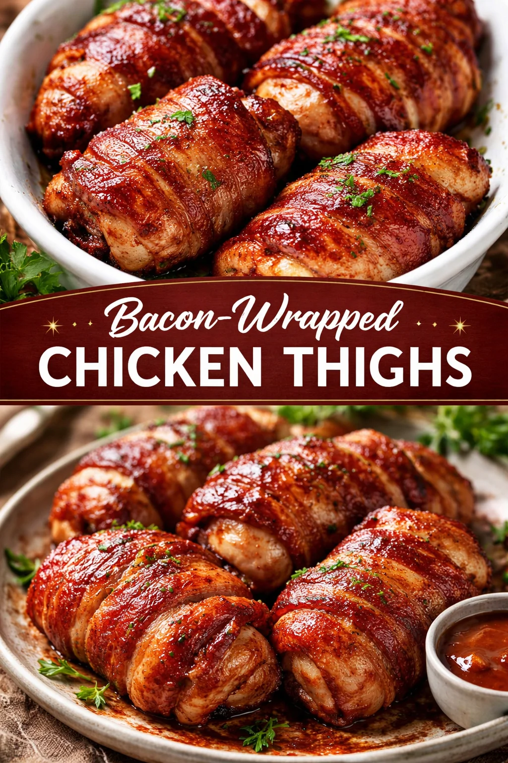 Bacon-Wrapped Chicken Thighs are one of those recipes that feels both indulgent and approachable — a quick dinner idea that becomes a family favorite with a crispy, smoky finish and a tender, juicy heart. Whether you serve them for a busy weeknight, a cozy gathering, or a festive meal, they have a way of making people slow down, smile, and ask for seconds. For an extra inspiration that influenced my method, I love this Bacon Wrapped Chicken Thighs recipe at Living Lou — it’s a lovely companion to try and adapt for your own kitchen traditions. Try this tonight, share it with someone you love, and let the little ritual of wrapping bacon around chicken turn into a new, delicious memory.