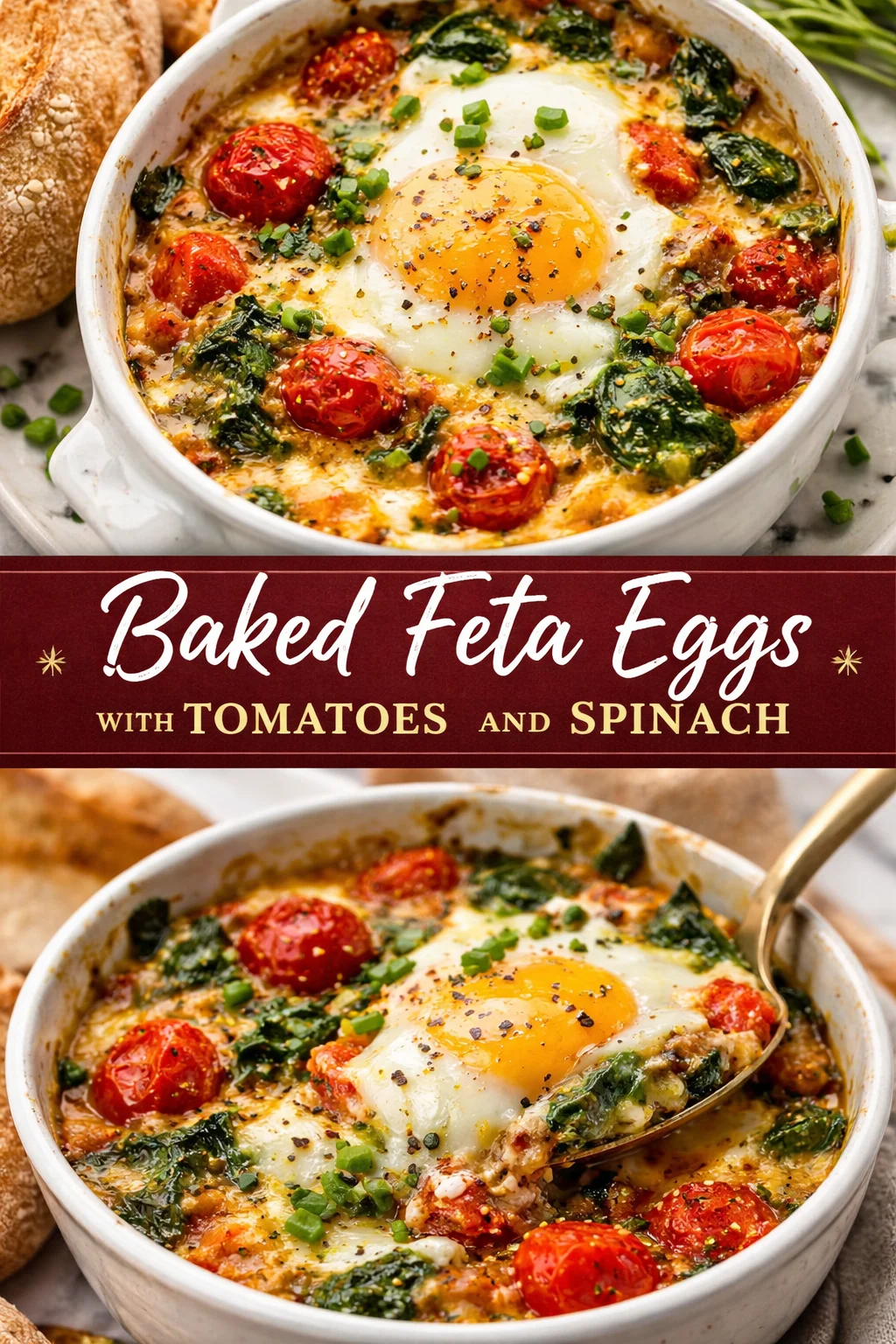 There is something quietly celebratory about Baked Feta Eggs with Tomatoes and Spinach — a dish that feels indulgent yet easy, festive yet familiar. It’s the kind of meal that brings people together, turning an ordinary evening into a memory. Try it tonight for a quick dinner idea that tastes like comfort and sunshine, and if you want to explore another twist on baked egg dishes, I enjoyed the inspiration from Spinach and Feta Egg Bake – Supper With Michelle. Share it with someone you love — these are the recipes that become traditions.