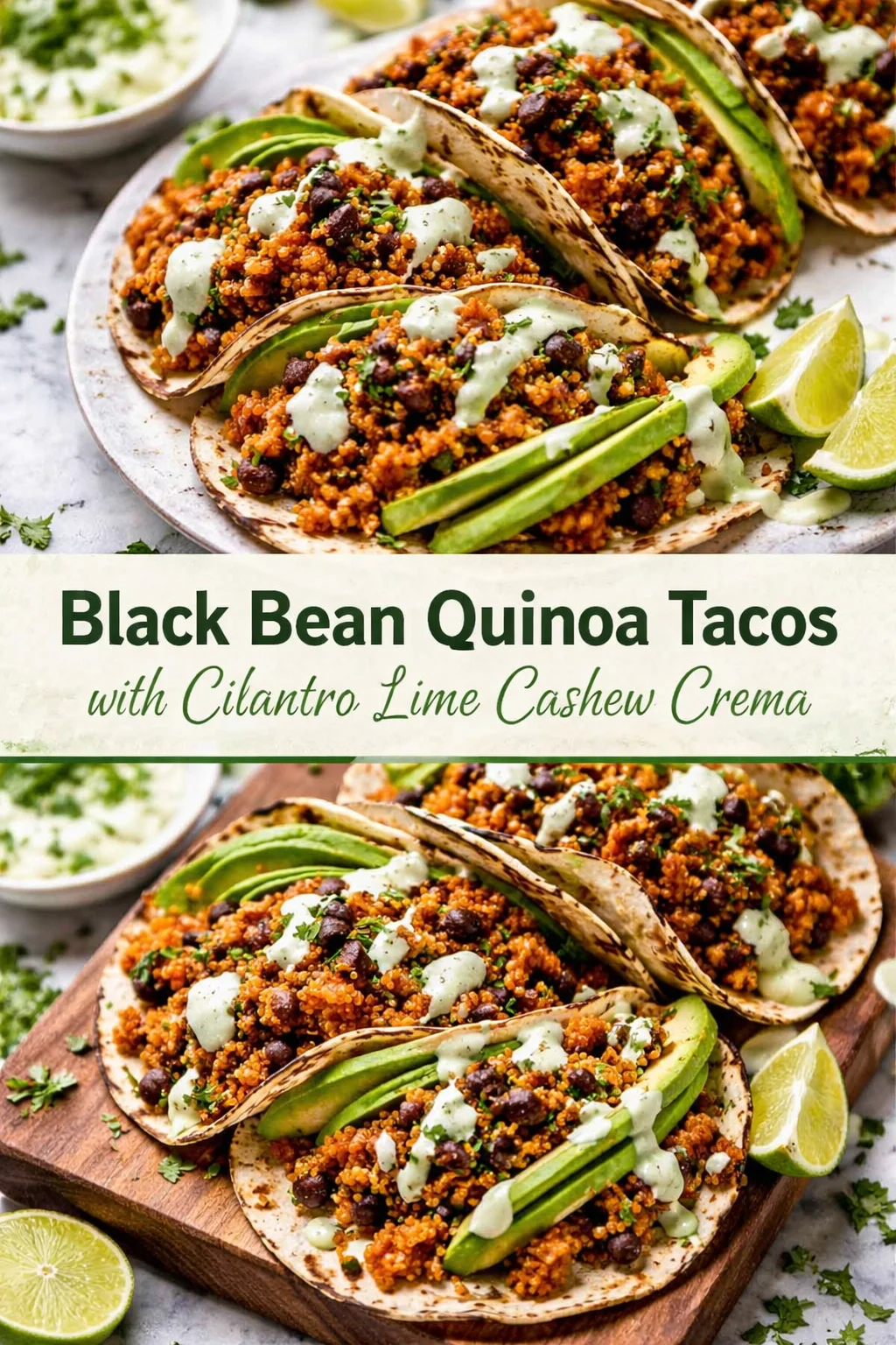Black Bean Quinoa Tacos with Cilantro Lime Cashew Crema