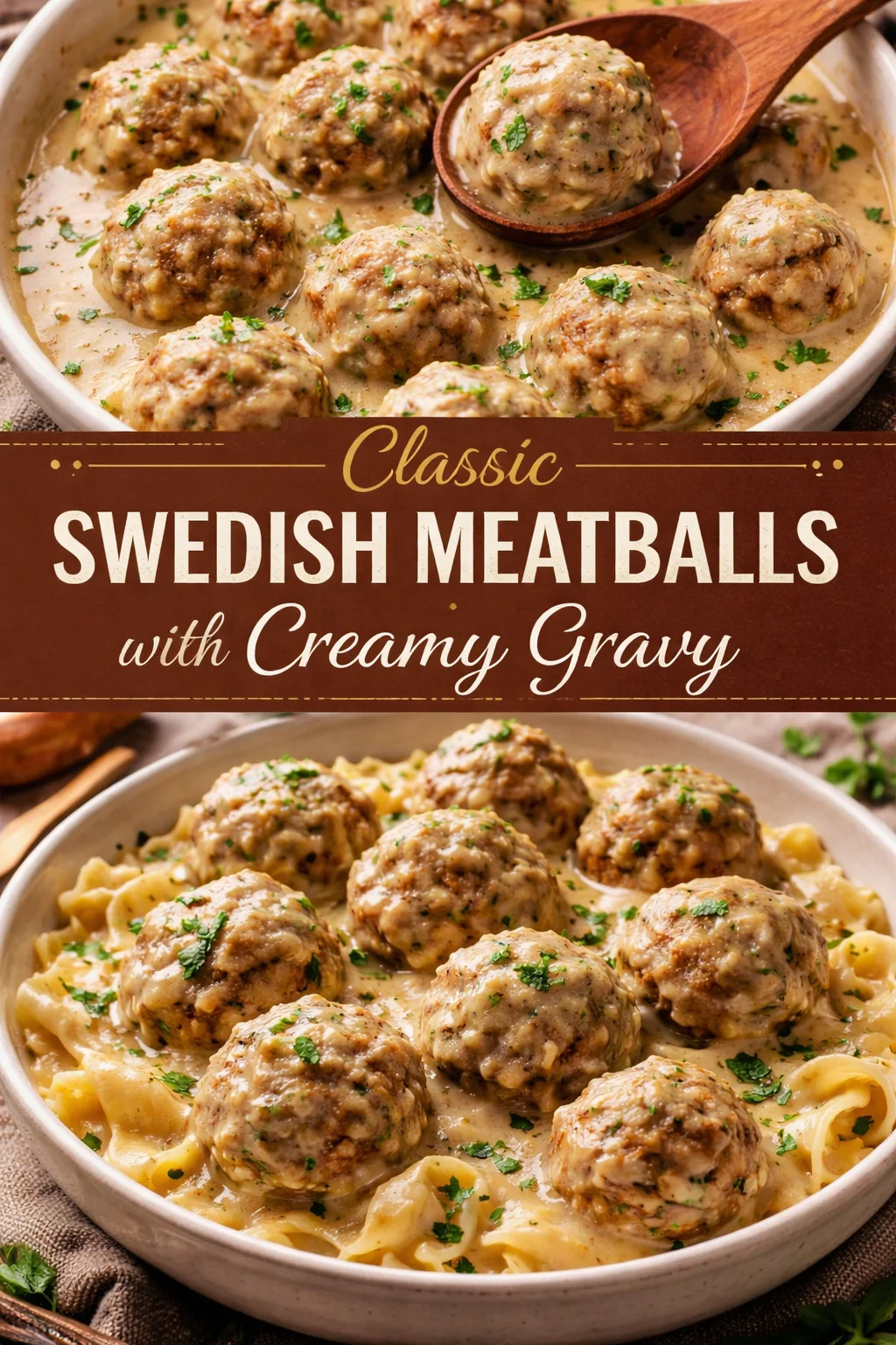 A comforting recipe for Swedish Meatballs served in a creamy gravy, perfect for family dinners and festive meals.