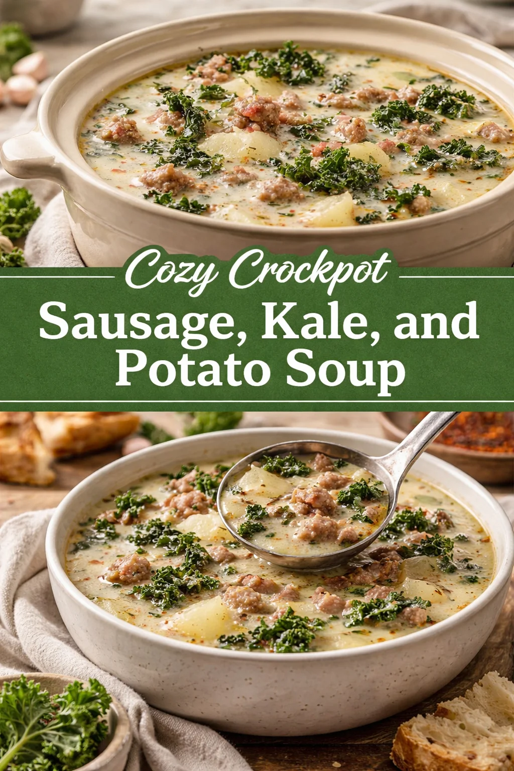 Cozy Crockpot Sausage, Kale, and Potato Soup