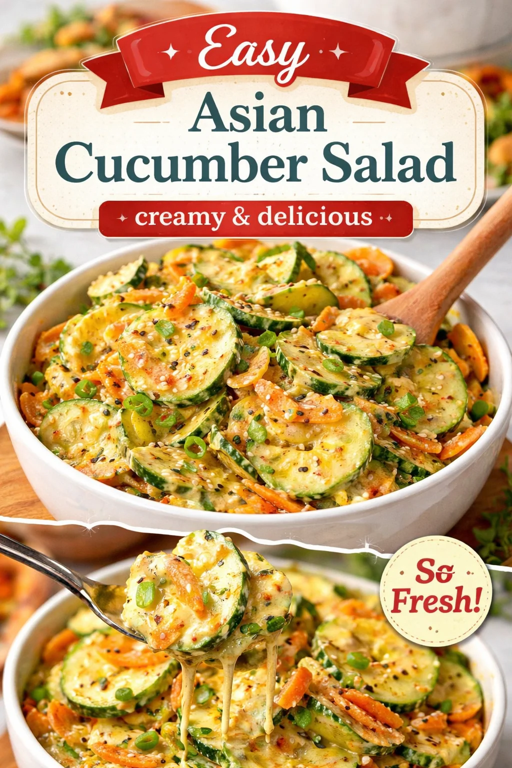 This Creamy Asian Cucumber Salad Bowl Recipe is a small, joyful ritual you can bring to weeknight dinners and festive tables alike. It’s bright, creamy, and forgiving — the kind of dish that welcomes improvisation and invites conversation. Make it tonight, tuck it into your meal rotation, and let it be the refreshing, comforting course that brings your family and friends a little closer. If this salad made you smile, share it, remix it, and keep the tradition alive.