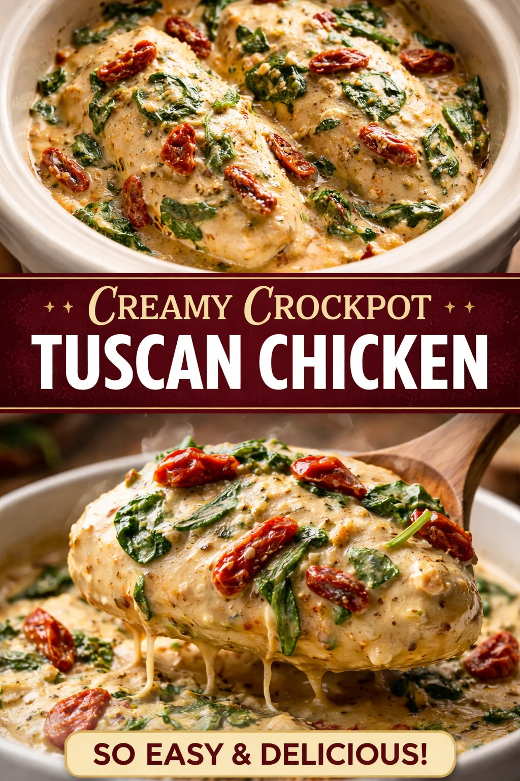 Creamy Crockpot Tuscan Chicken is one of those recipes that feels like it was made for bringing people together — it’s warm, comforting, and forgiving. Whether you’re feeding a crowd, craving a family favorite, or simply want an easy recipe that fills the home with irresistible aromas, this dish delivers. Try it on a busy weeknight, tuck it into your weekend menu, and consider making it part of your cozy traditions. I can’t wait to hear how it becomes a new favorite at your table — share the joy, pass around the bread, and savor every spoonful.