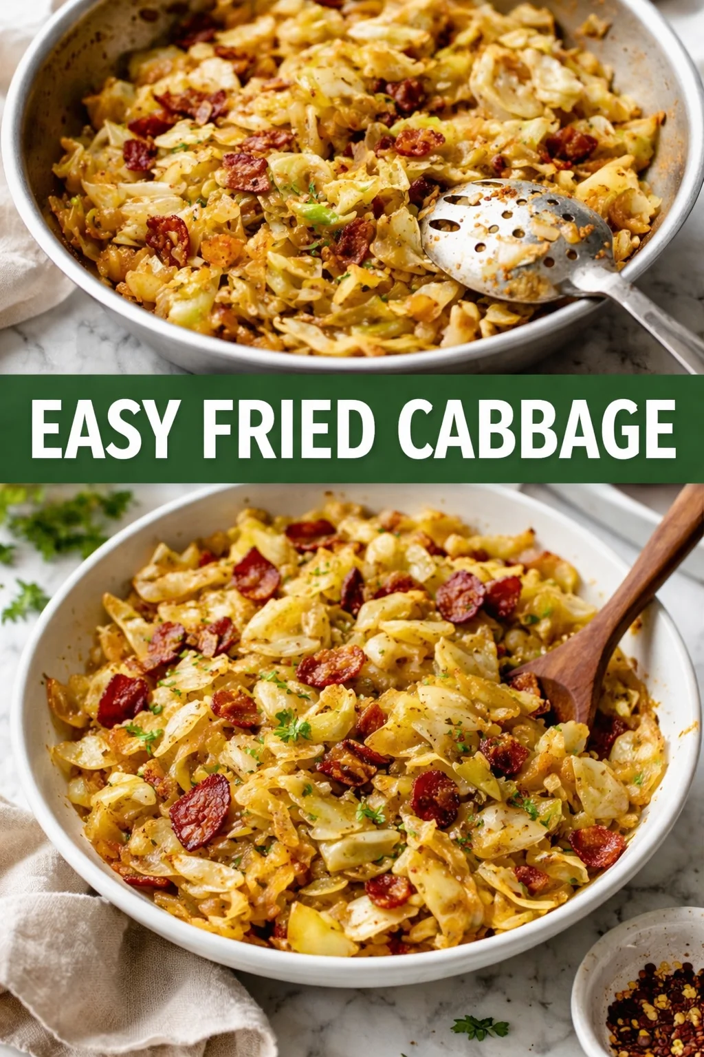 Why not create a cozy meal by pairing your EASY FRIED CABBAGE with roasted chicken or grilled sausages? Serve it alongside a crispy salad and a glass of chilled white wine for an effortless dinner that feels special. Picture yourself enjoying this hearty dish after a long day’s work, savoring every bite as laughter fills the air. It’s great for family gatherings or a casual weeknight dinner, bringing everyone together around the table.