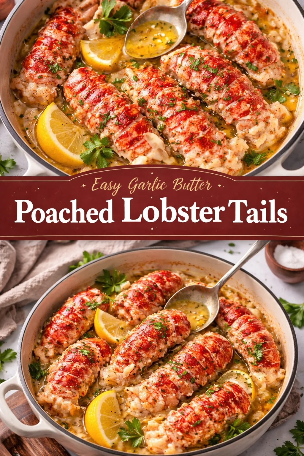 Cooking Easy Garlic Butter Poached Lobster Tails is like wrapping a little luxury in an everyday evening. It is an easy recipe that teaches you to trust simple ingredients: butter, garlic, lemon, and good lobster. Whether you are celebrating, feeding loved ones, or treating yourself to a cozy night in, this dish creates warmth, joy, and a memory around the table. Try it, share a photo, and let it become one of your family’s favorite traditions.