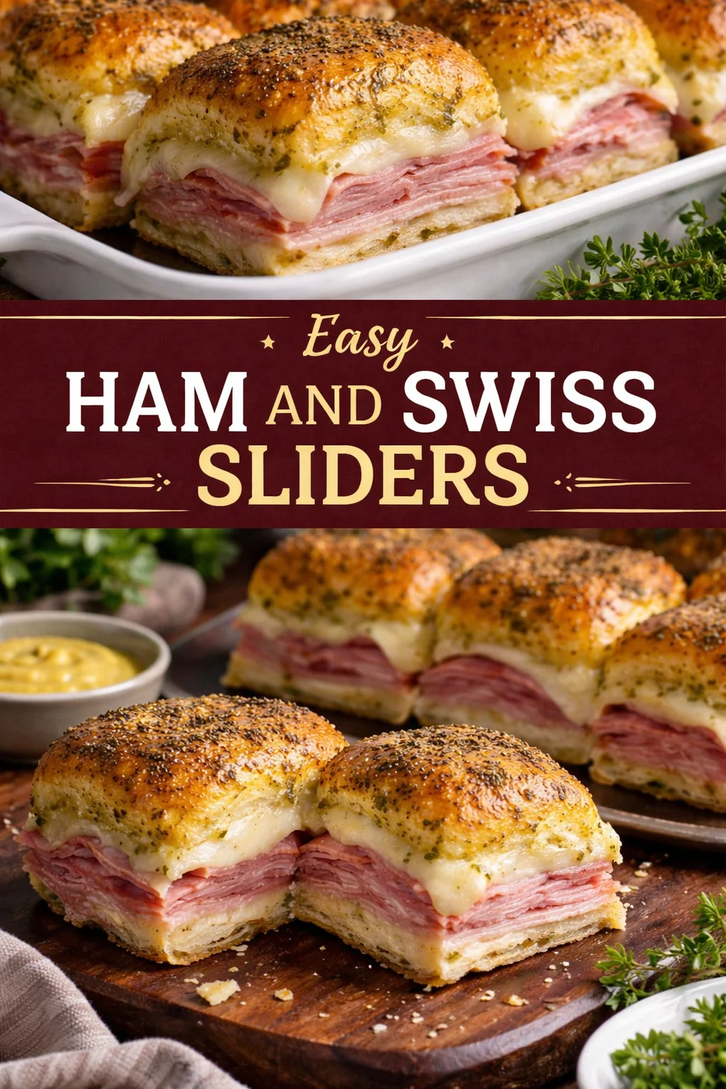 A comforting and delicious slider recipe featuring warm, melty Swiss cheese and thinly sliced ham, perfect for celebrations or quick meals.