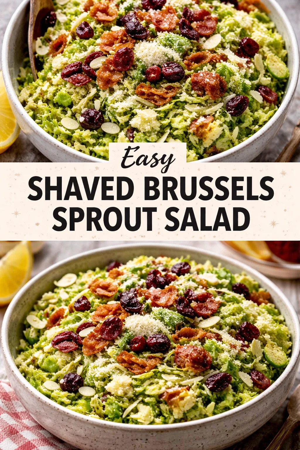 A quick, healthy salad featuring crisp shaved Brussels sprouts, toasted nuts, and a bright vinaigrette, perfect for both weeknight dinners and festive gatherings.