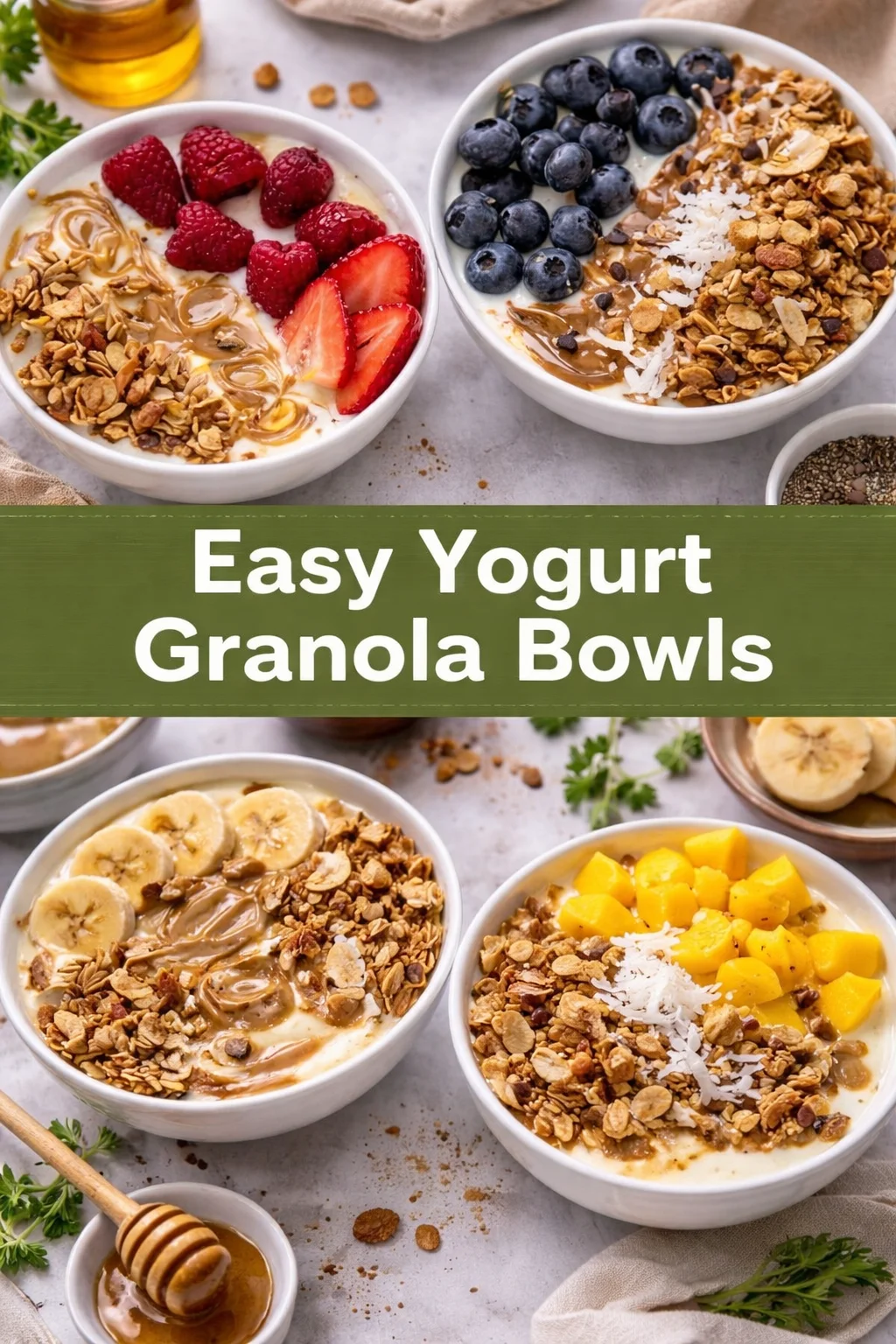 Easy Yogurt Granola Bowls (4 Ways!)