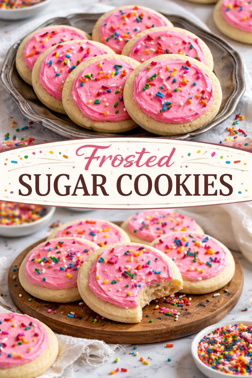 - For the frosting, beat butter until smooth, add powdered sugar gradually, then milk and vanilla until spreadable. Frost cooled cookies and decorate with sprinkles if you like.
