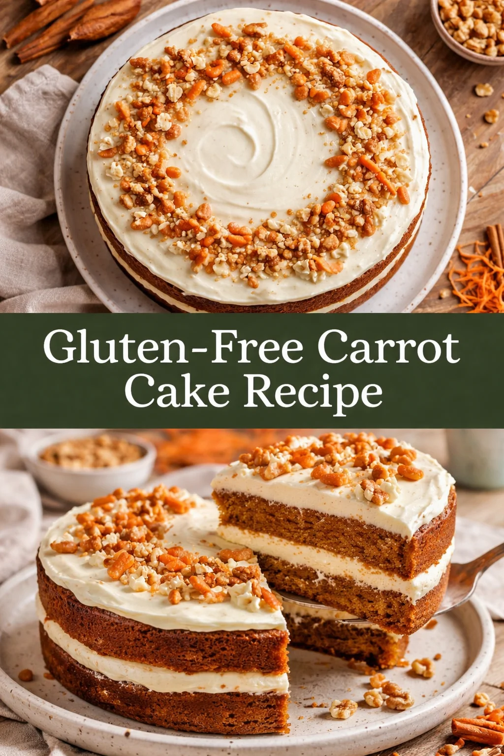 There is nothing like the warm, spiced scent of baking carrots and cinnamon drifting through a kitchen to make you feel instantly at home. This Gluten-Free Carrot Cake is my go-to homemade recipe when I want an indulgent treat that still feels like a cozy favorite — moist, tender layers threaded with grated carrots, toasted nuts, and a tangy cream cheese frosting that melts on the tongue. In just a few simple steps you can create a festive dish that tastes like celebration and comfort in equal measure. If you love exploring best carrot cake variations, you might also enjoy how different shapes and spices transform the same simple batter into something new; I like to keep a little experiment jar for extra spices and nuts.