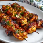 - Grill the Skewers: Place the skewers on the grill. Cook for about 10–15 minutes, turning occasionally, until the chicken is fully cooked and has beautiful char marks. The chicken is done when internal temperature reaches 165°F (75°C).