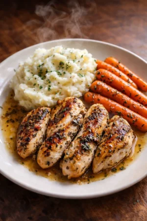 Garlic Herb Chicken with Mashed Potatoes and Glazed Carrots