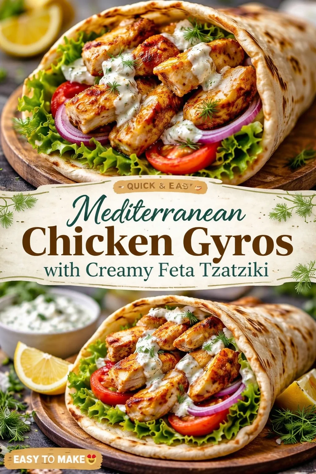 Mediterranean Chicken Gyros with Creamy Feta Tzatziki