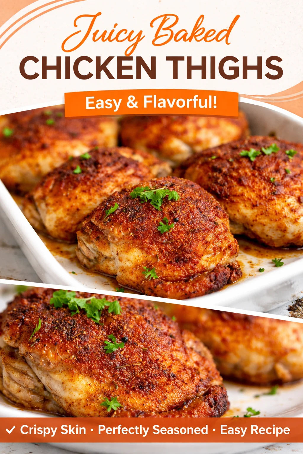 baked chicken thighs crispy skin is one of those phrases that sounds simple, but somehow it can feel weirdly hard to pull off at home. I have had nights where the chicken was juicy but the skin was kind of sad and rubbery. I have also had the opposite problem where the skin was great, but the meat got a little dry. After a lot of small tweaks (and a few hungry taste tests), I landed on a method that works consistently in my regular, not fancy kitchen. If you want reliable crispy skin and tender meat, this is the exact approach I use and why it works.
