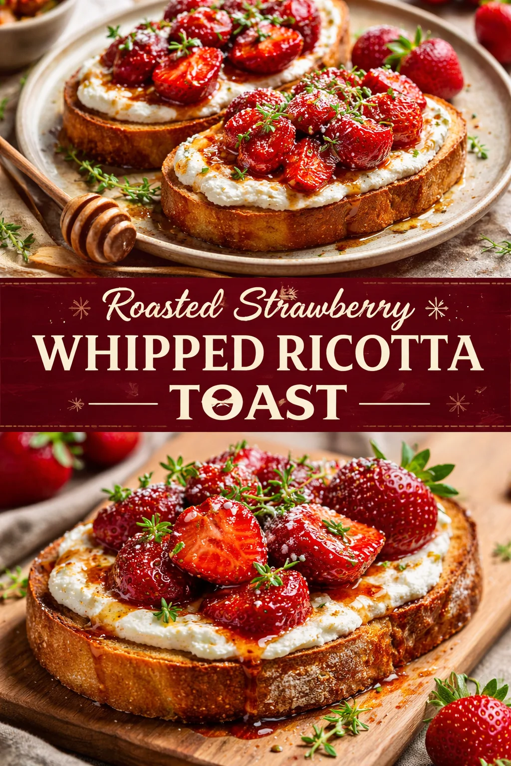 There is an honest kind of joy in simple things done well — a warm slice of toast, a spoonful of airy ricotta, and strawberries that roast until they are syrupy and sweet. Roasted Strawberry Whipped Ricotta Toast is more than an easy recipe; it is a small ritual that can make a weekday morning feel special or turn a casual gathering into a festive meal. If you want step-by-step photos and a video to walk you through the process, check out this full guide to Roasted Strawberry Whipped Ricotta Toast (Recipe & VIDEO). Try it, tweak it, and make it your own — then pass the recipe along so someone else can feel that same warm, inspired connection at their table.