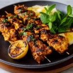 Tender, juicy grilled chicken skewers marinated in a flavorful mixture of yogurt, garlic, and spices, perfect for any gathering or weeknight dinner.