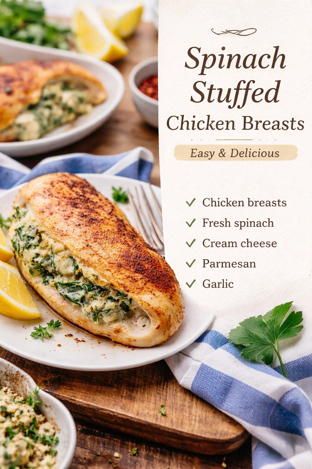Perfect for a weeknight meal, these Spinach Stuffed Chicken Breasts are ready faster than takeout will arrive at your door, delivering comfort and joy into your kitchen.